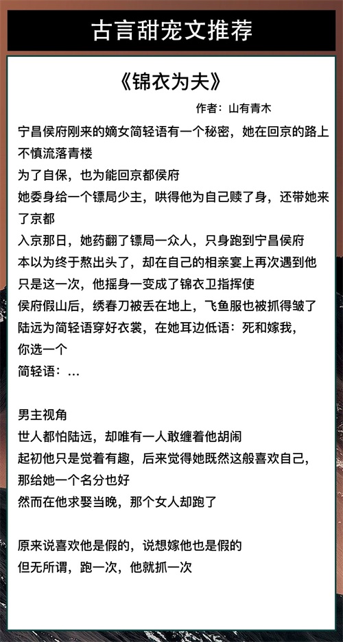第三本《锦衣为夫》作者:山有青木