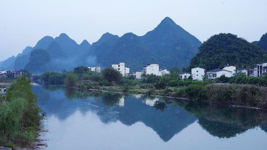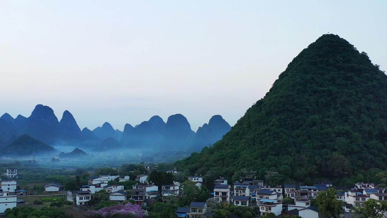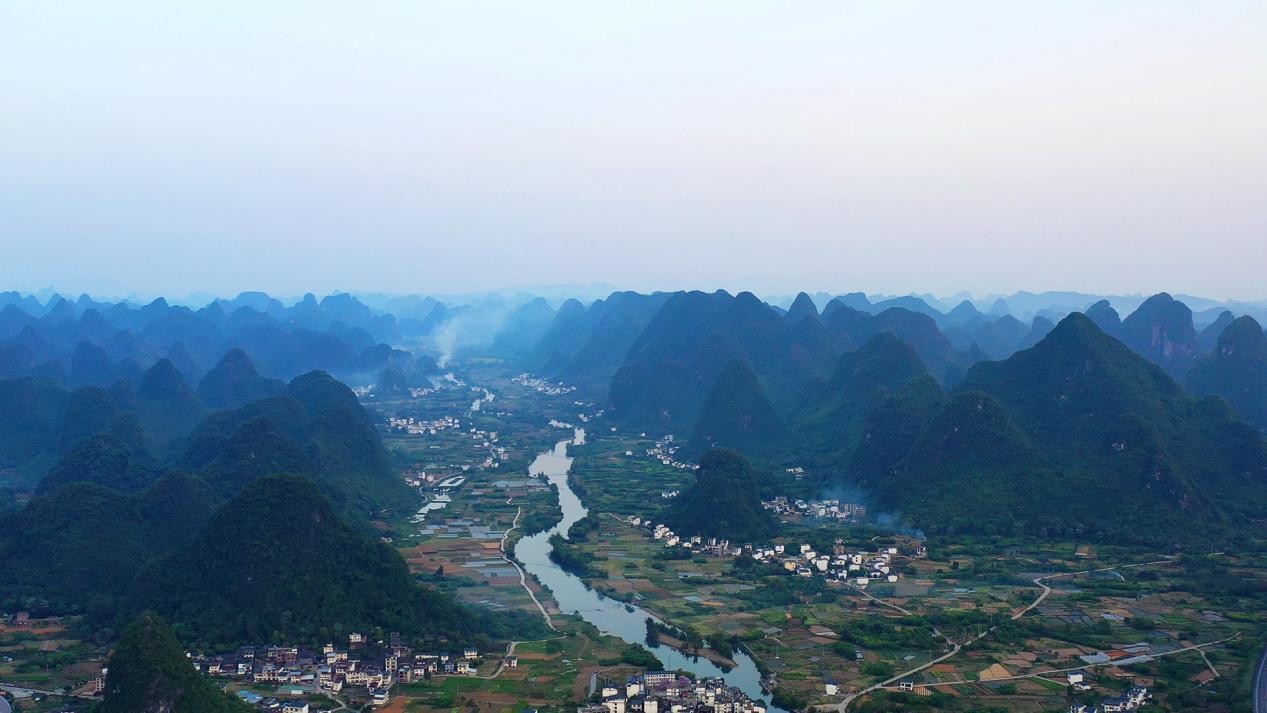 桂林市阳朔镇遇龙村炊烟袅袅(央广网发 何俊儒 摄)