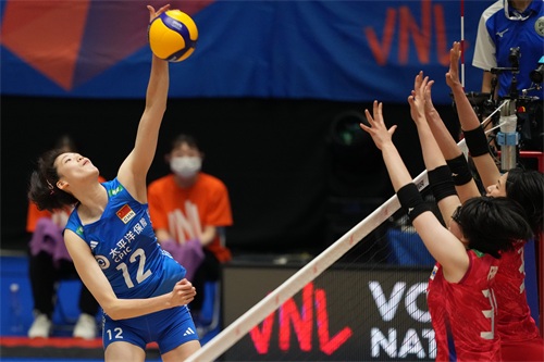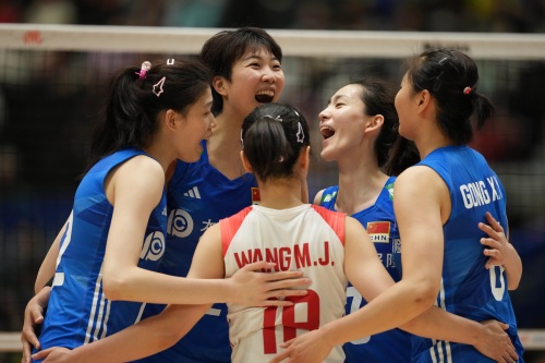 当日,在日本名古屋举行的2023世界女排联赛分站赛中,中国队以3比0战胜日本队。