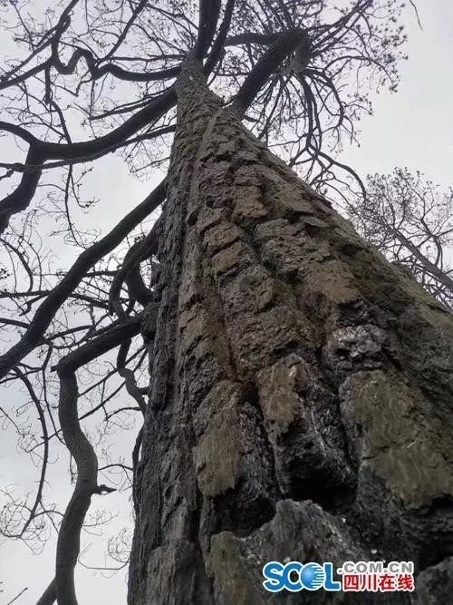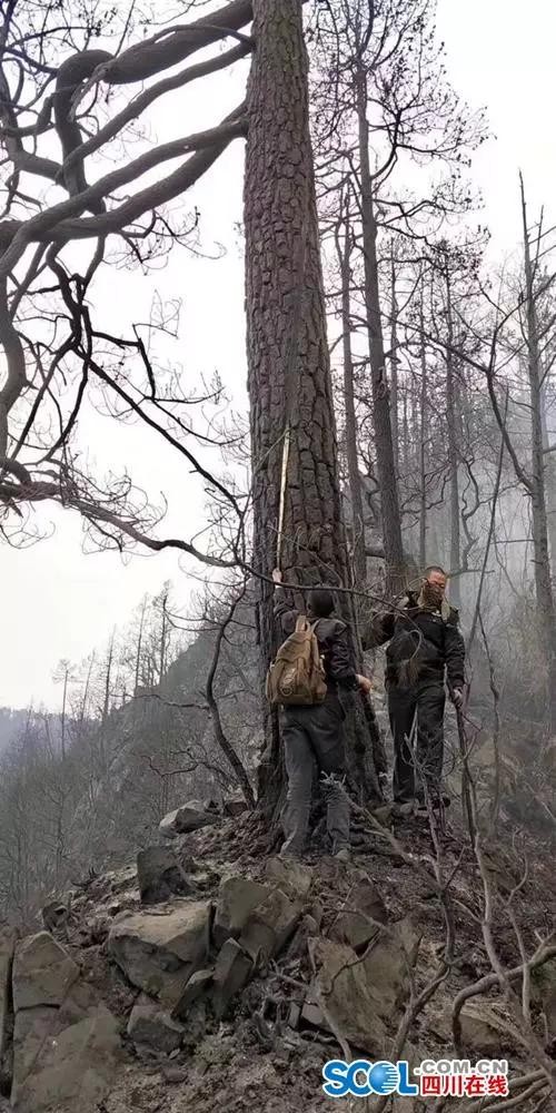 凉山州森林公安局局长李光俊介绍,起火点这棵云南松有明显雷击痕迹和火烧痕迹,可以确认火源地和起火原因。