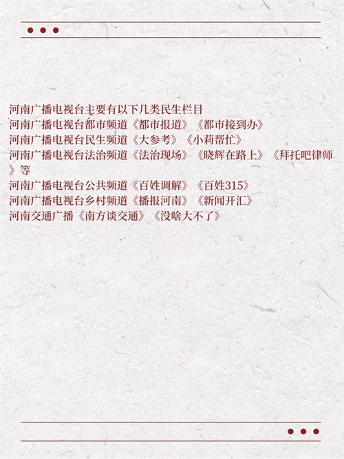 河南广播电视台主要有以下几档民生栏目