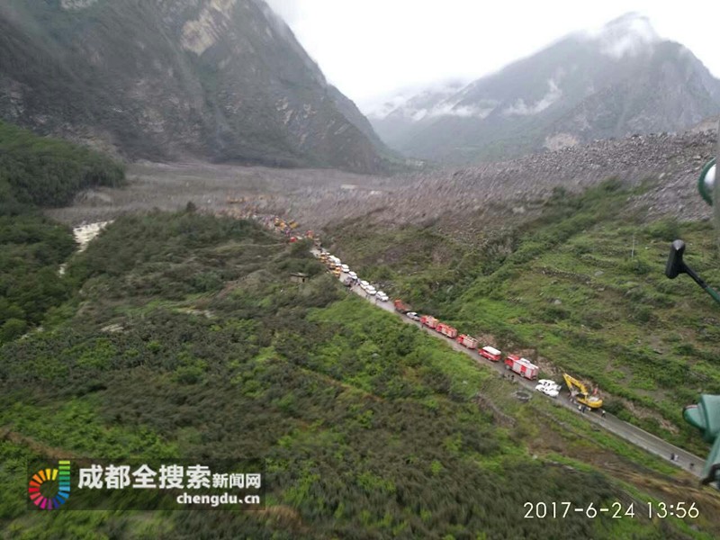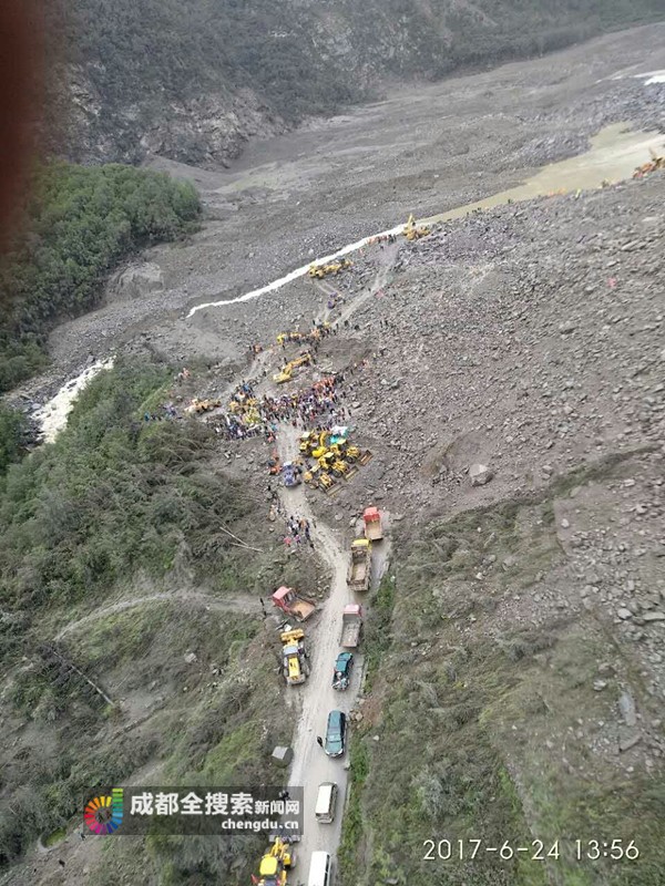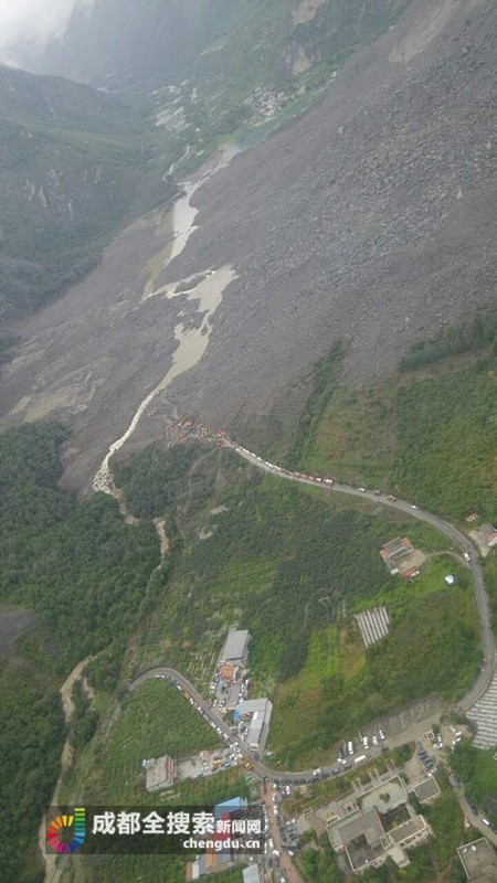 成都全搜索新闻网(记者但唐文)6月24日报道 24日凌晨6:00时许,阿坝州茂县叠溪镇新磨村发生高位山体垮塌。初步统计,造成46户房被掩埋、141人失联,河道堵塞2公里,1600余米道路被掩埋。