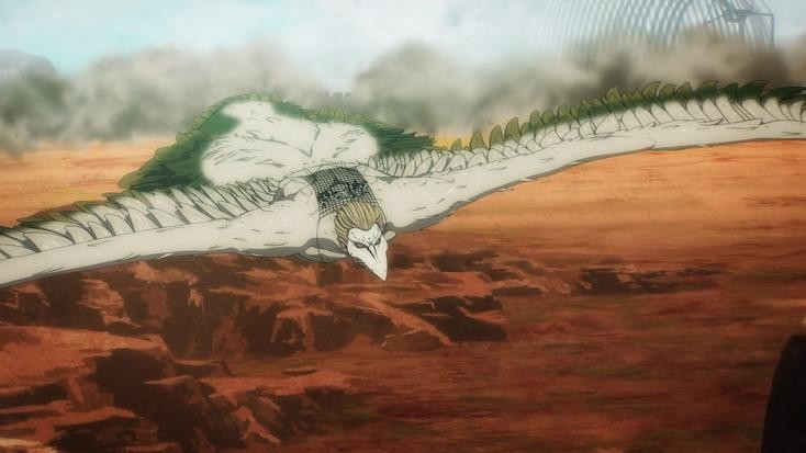 最后由法尔克继承,因为吉克脊髓液的缘故,还让颚巨身上长出了一双翅膀,作为九大巨人里唯一会飞的巨人。