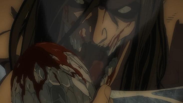 在之后变身铠巨的作战中,被调查兵团用雷枪围攻,也是靠意识转移到躯干才得以存活。