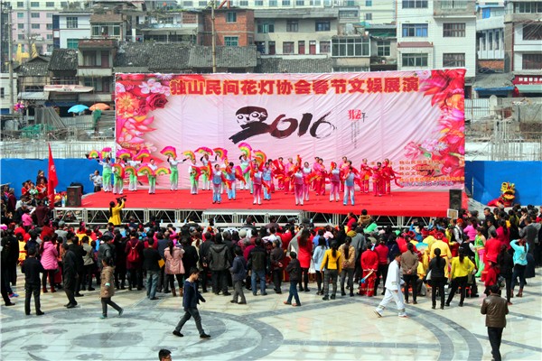 新华网贵阳2月14日电(通讯员 朱俊洁)2月13日,独山举办民间花灯协会春节文艺展演,全县19个民间花灯队共230余名花灯爱好者欢聚一堂,载歌载舞,欢度新春。