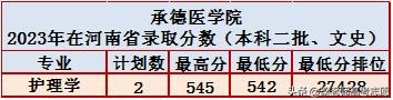 三、2023年在河南省录取专业、分数、及省位次如下: