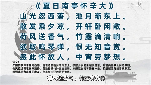 古诗词鉴赏:唐代孟浩然《夏日南亭怀辛大》。