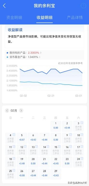 再看看过年期间的收益,19号体现出来9号-18号收益,总共3.48元,一共10天,每天的实际收益是0.38元。