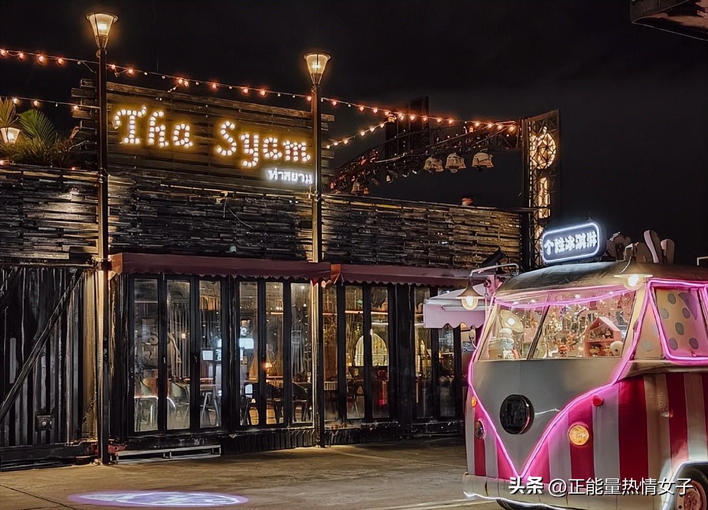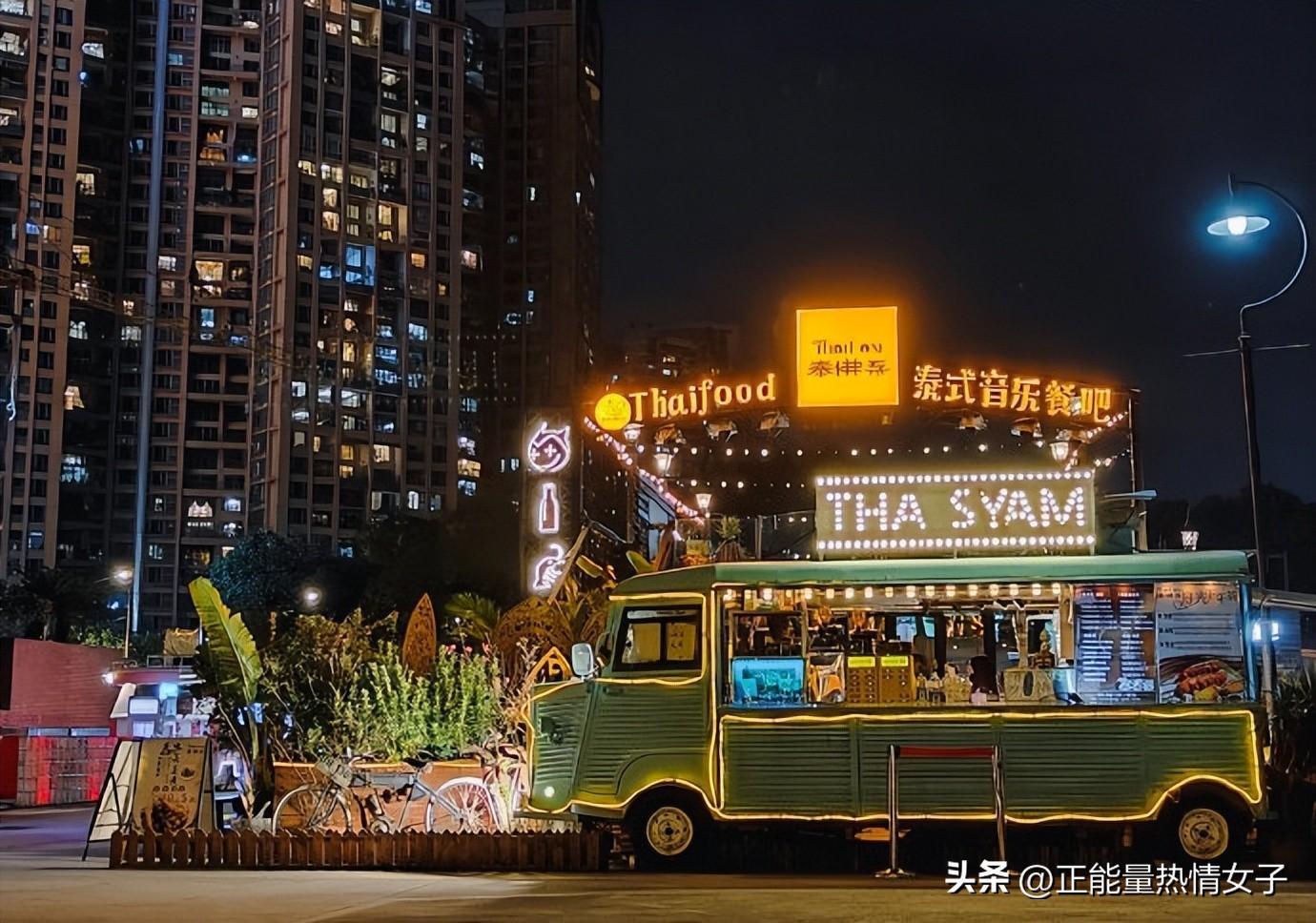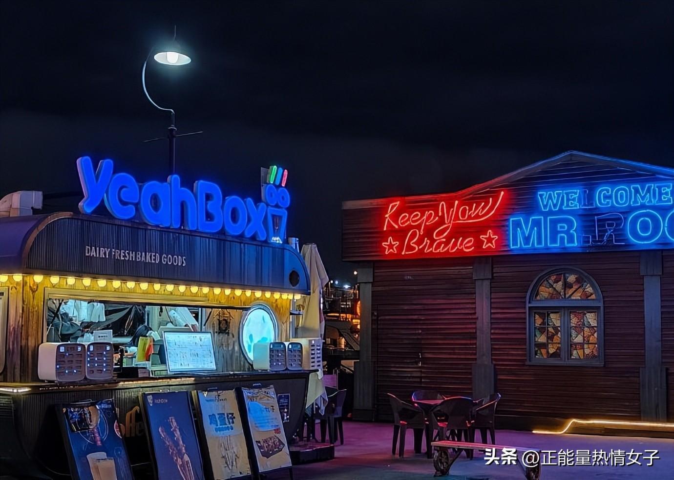 霓虹闪烁的灯光,小资的巴士甜品站、集装箱式的码头酒吧、巨型邮轮涂鸦墙……