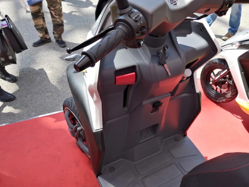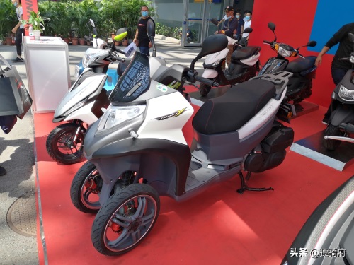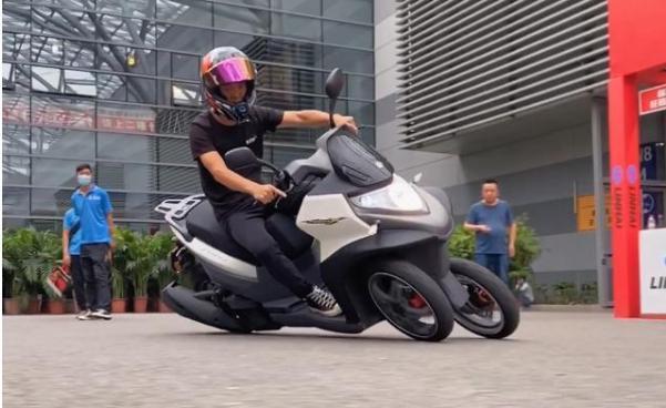 在重庆摩博会上亮相的这款倒三轮应该还不是正式上市的版本,例如前轮没有设计挡泥板,而量产版的就已经配上了挡泥板。