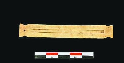 据介绍,石峁遗址骨制口弦琴均出土于皇城台东护墙北段上部的“弃置堆积”内。这里出土的骨制口弦琴制作规整,呈窄条状,中间有细薄弦片,一般长8~9厘米,宽约1厘米,厚仅1~2毫米。与其共存的还有骨制管哨和陶制球哨。最新的测年数据显示,这些口弦琴制作于距今约4000年前。