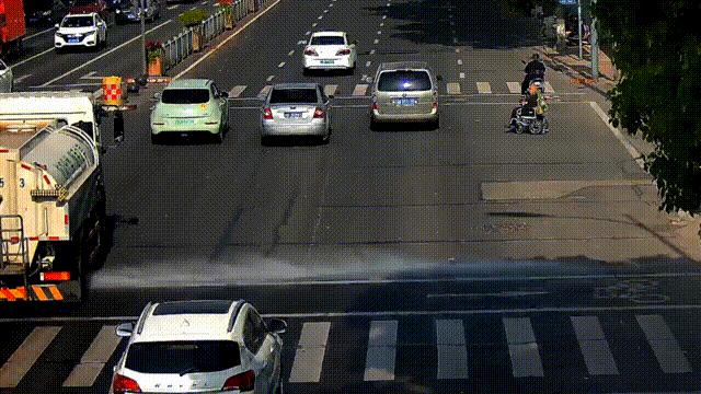 见洒水车已经过路口