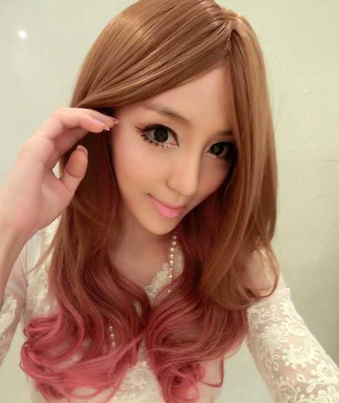 个性、潮流,看到这样的中分梨花头渐变发型,小编只能用到这样的修饰词语,棕色的发色渐变成樱花红,看上去的效果是不是很赞呢??既修脸又减龄,圆脸的妹子不用担心哦!