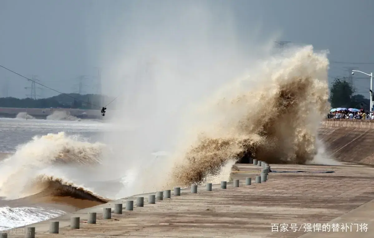 钱塘江大潮到来前,远远看去只能看到一个细小的白点,之后变成了一缕银线,伴随着一阵阵闷雷般的潮声,潮水翻滚而至,几乎不给人们反应的时间,因此每年都会有许多不知情的游客被潮水淹没。汹涌澎湃的钱塘江大潮,潮峰高达3—5米,一旦被淹没就非常危险。