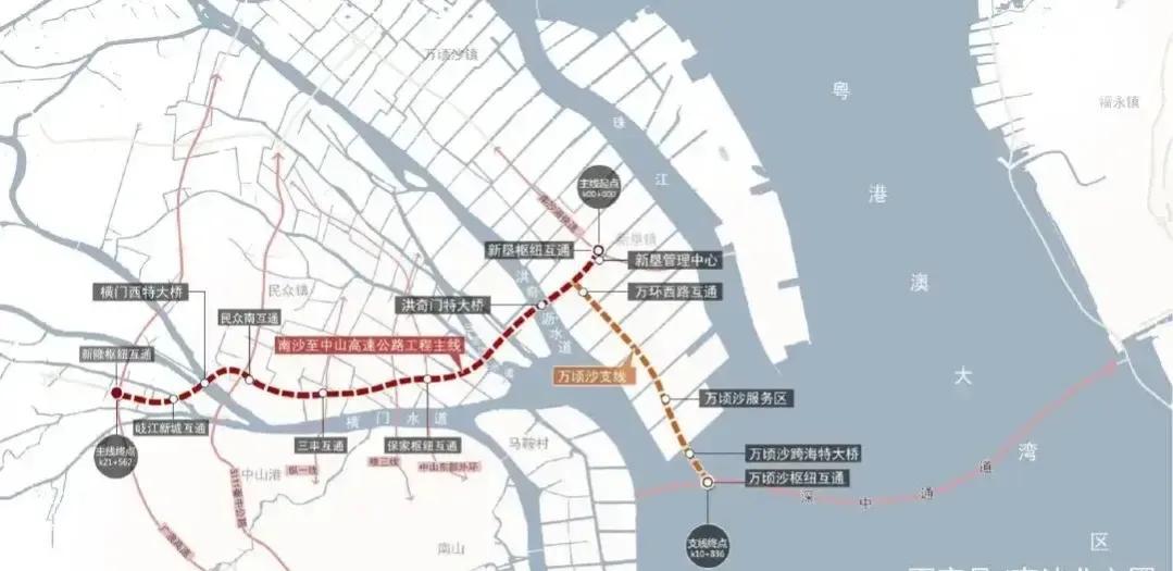 同时,连接南沙区万顷沙与中山市的南中高速也正在抓紧推进建设当中,并将在2024年建成通车。