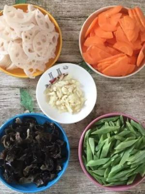 2、准备由来胡萝卜配料片,荷塘月色这道菜的寓意,荷塘月色是什么菜谱,彩椒是什么丁,荷塘月色这个菜的配料是什么,正宗荷塘月色菜的做法,再泡点木耳名菜;