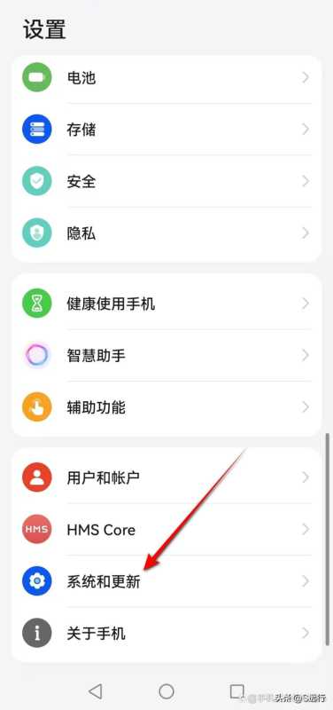 在手机设置页面,点击“系统和更新”。