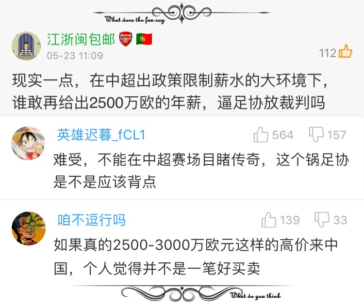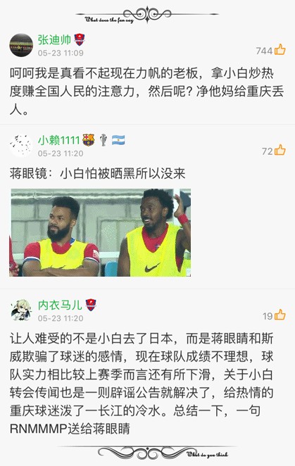 虽然感觉很不爽,但球还是要看啊。毕竟日本人给出的年薪实在是太高了,也有不少球迷对球队不能签下小白,表示了理解。