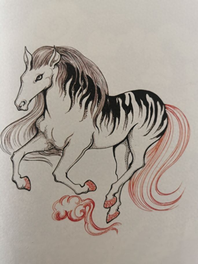 山中有一神兽,名唤做鹿蜀。据见过的人描述,鹿蜀的样子很像一匹骏马,只是不同的是,他的脑袋却是白色的。头顶洁白的毛发像雪一样,洁白而又神圣,十分美丽,他的身上长着花纹,花纹跟老虎身上的纹路一样,看起来威风凛凛。
