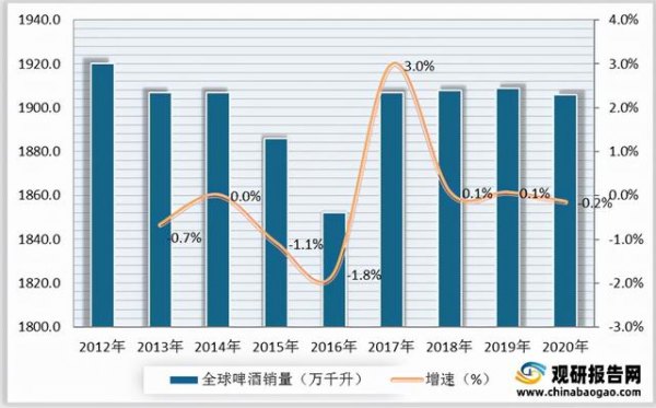 2012-2020年全球啤酒消费量