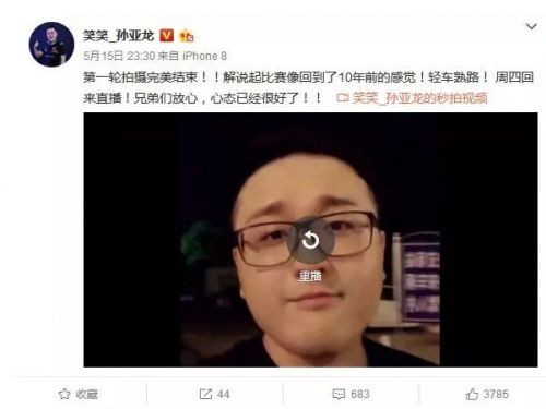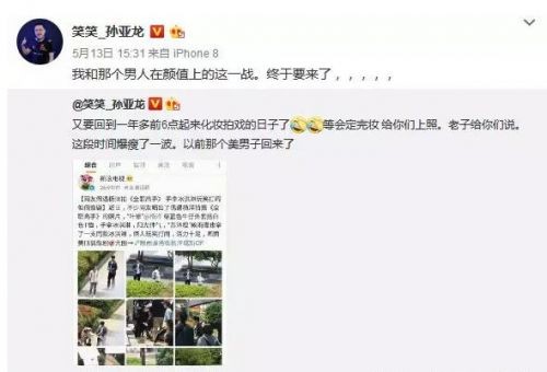 笑笑孙亚龙微博更新生活近况 表示今天将复出直播