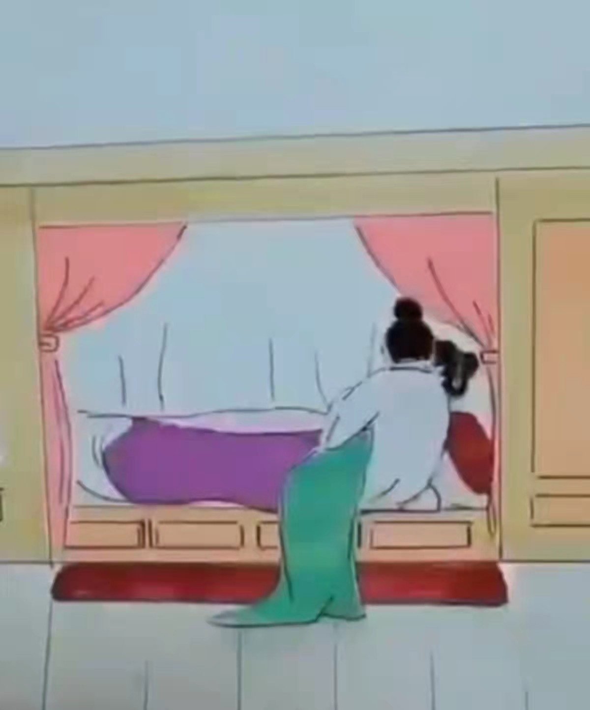 第二天,主人正在午睡被女仆叫醒,女仆告诉主人,自己又不小心打碎一只碗,自求惩罚。