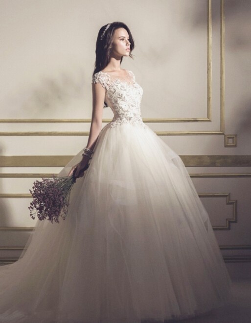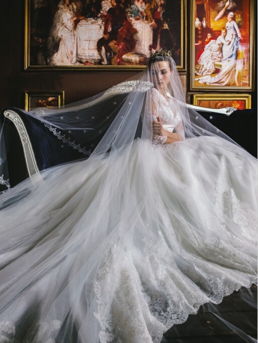 不需要过于华丽耀眼的点缀,优雅的剪裁、挺立的质感,和精巧细致的手工,是贵族婚纱的特色。