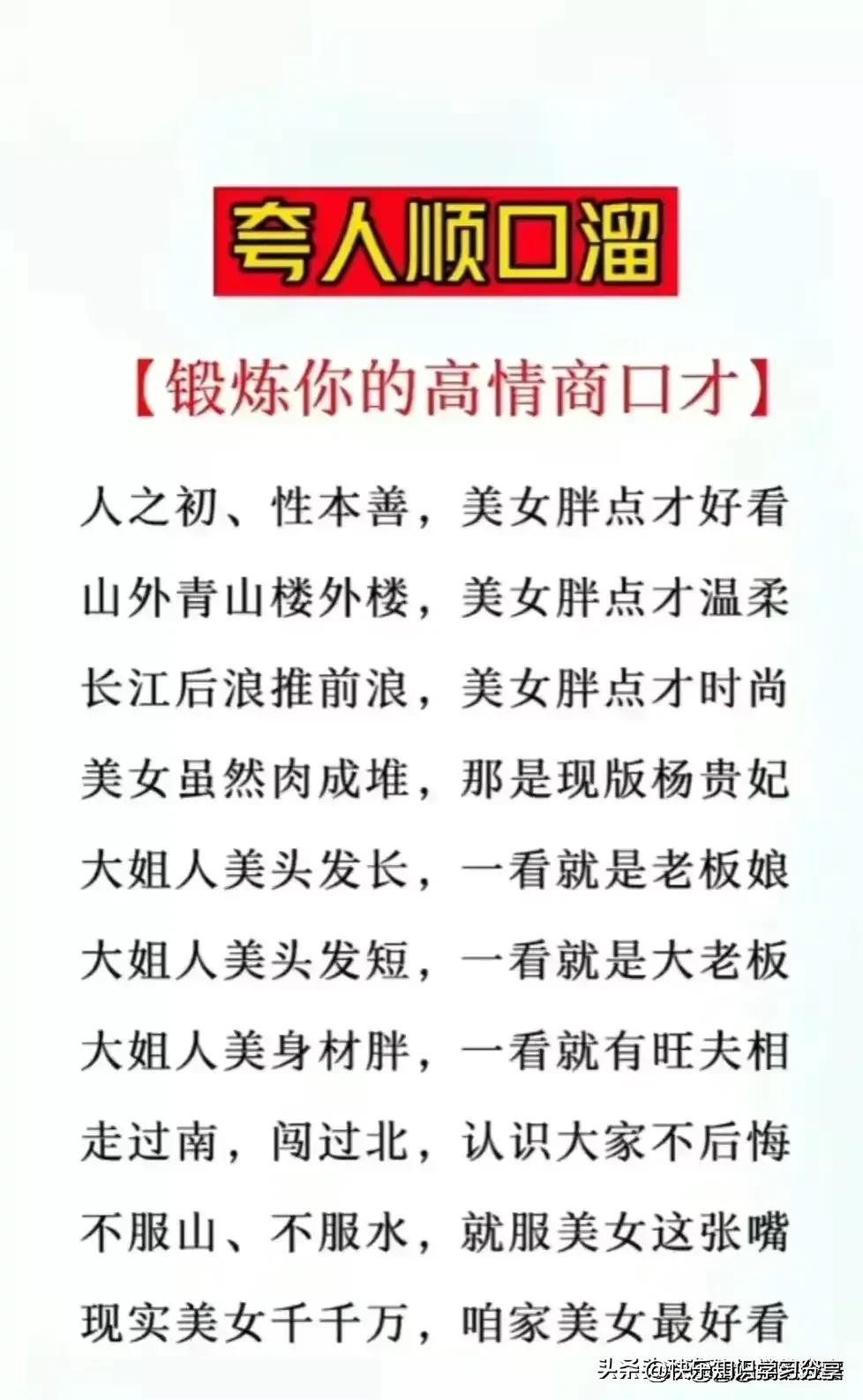 夸人顺口溜,整理得太好了,快来提高你的情商口才