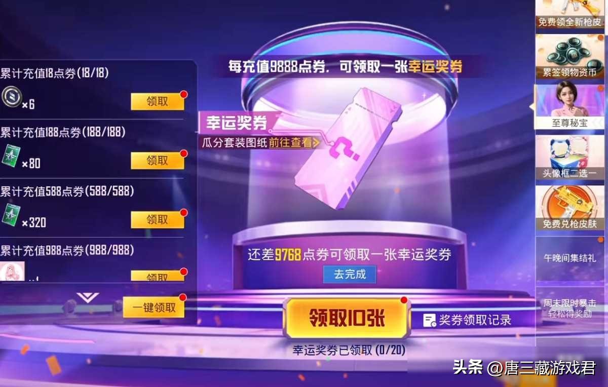 想要获取这次返场皮肤其实并不难,只要把握住充值优惠活动即可。据和平精英本次充值活动介绍,不同档位的点券充值不仅能获得相应的战备积分或荣耀勋章等奖励,更有机会享受到最高达75折的优惠力度。