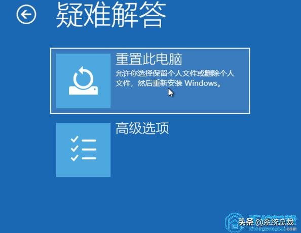3、然后大家点一下重置此电脑选择项。