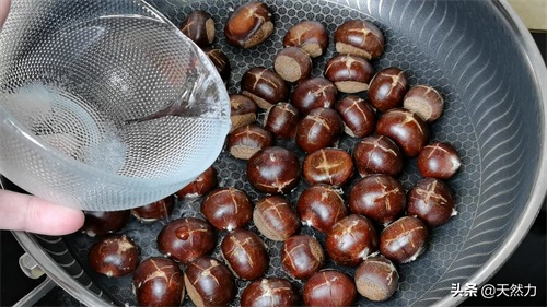 5、加盖煮至水干后,栗子壳开始开裂就可以出锅。