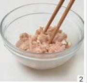 1 猪腿肉去筋,用刀背捶成蓉状,再剁细成泥。