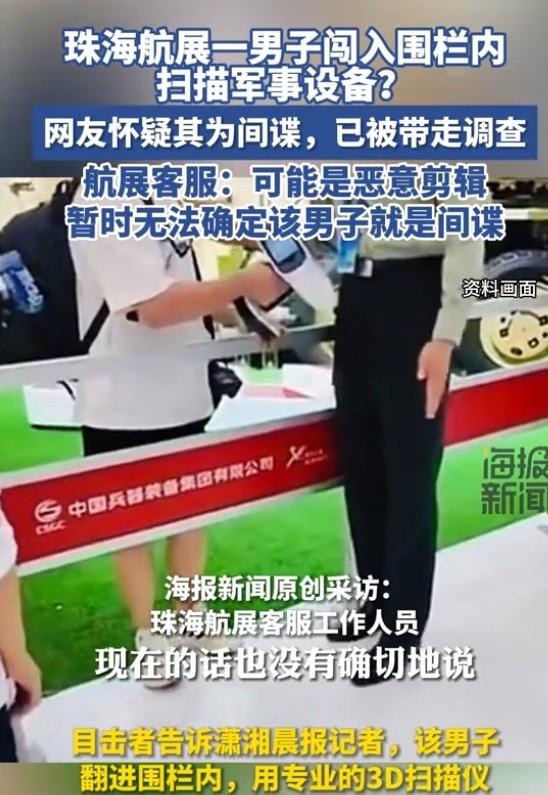 事件的曝光不仅令公众关注该男子的身份和动机,还引发了对珠海航展安检体系的质疑。在一场集结了大量军事和航空装备的航展上,如何能出现如此明显的安全漏洞?网友纷纷表示,若这一男子成功突破安检,那是否意味着有更多潜在间谍已经悄然潜入?部分人甚至猜测,这位男子可能是外籍间谍,正在为某个国家搜集敏感数据。