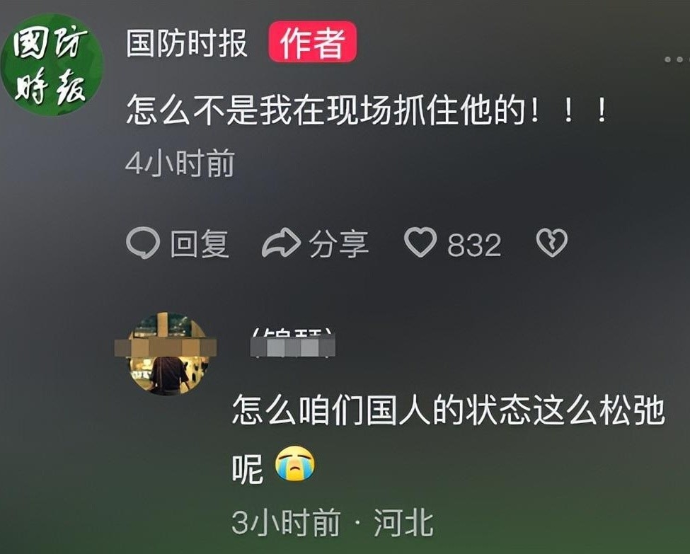 值得注意的是,国防时报视频发布后,50万元悬赏的呼声也在社交媒体上引发广泛讨论。网友们纷纷表示遗憾,认为错过了举报这名可疑男子的机会。这种悬赏与公众参与度的提高,不仅体现了人民群众对国家安全的关注,也反映了社会对间谍活动的高度警觉。