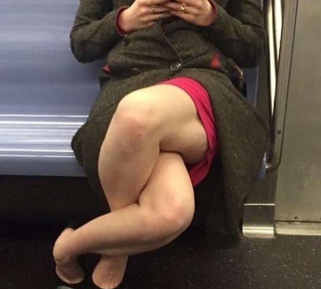 在地铁上,一女子的坐姿成功的吸引了很多人,这双脚的姿势能做的估计没多少人吧。