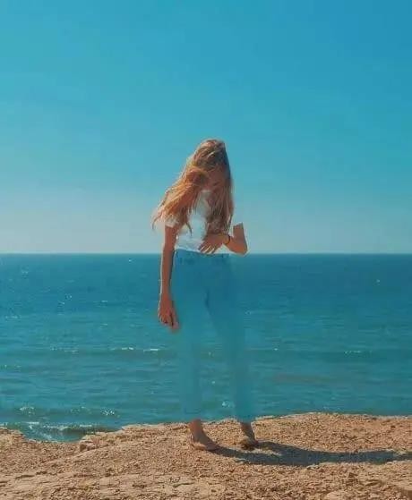 下半身和大海的颜色完全一样,这女孩难道会隐身,太神奇了。