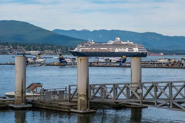在水中行驶的轮船,被两根巨柱子支撑起来了。