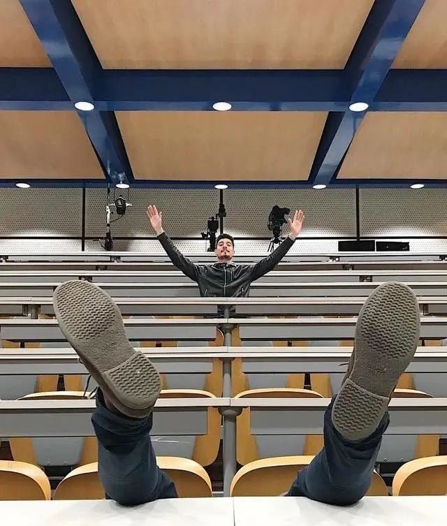 拍摄中的男子,用颠倒的姿势展现在我们面前,完全不知道是怎么拍摄的。