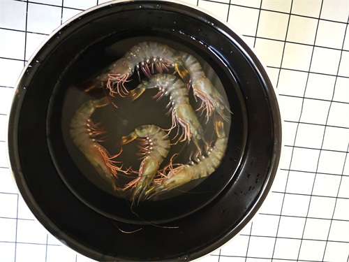 1. 黑虎虾从冰箱里拿出,提前化冻,最好用流动的水冲洗解冻;