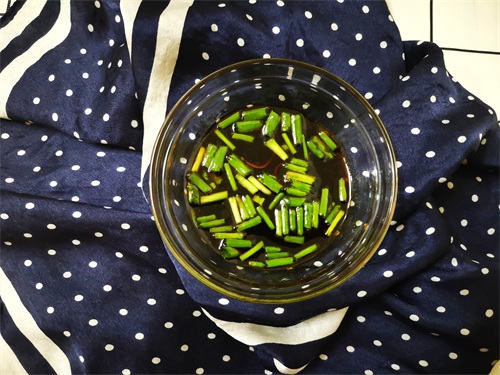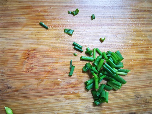 5. 现在我们准备调料,把小香葱洗净切碎,这个小香葱也是我自己花盆里种的,吃起来很香,装入小碗里;