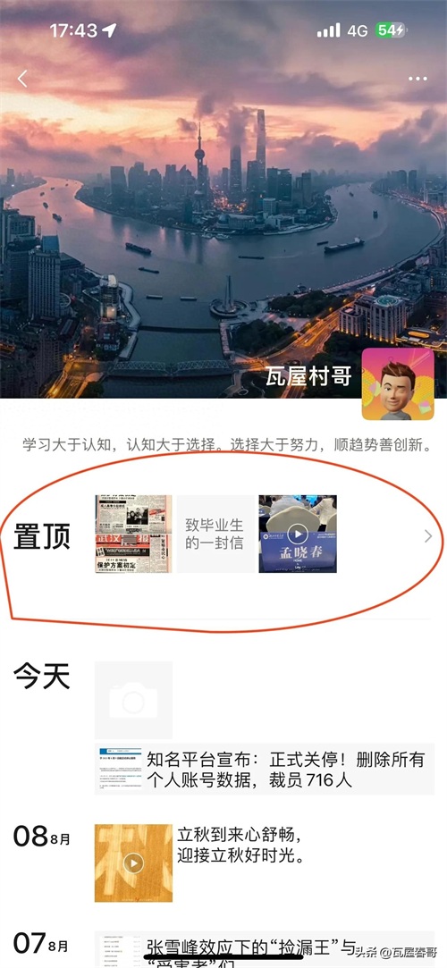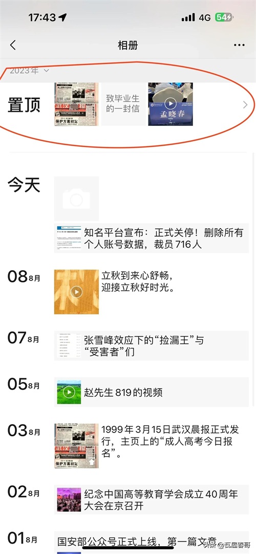 微信上线新功能,朋友圈可以置顶了。
