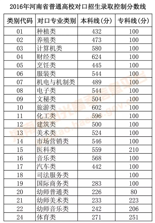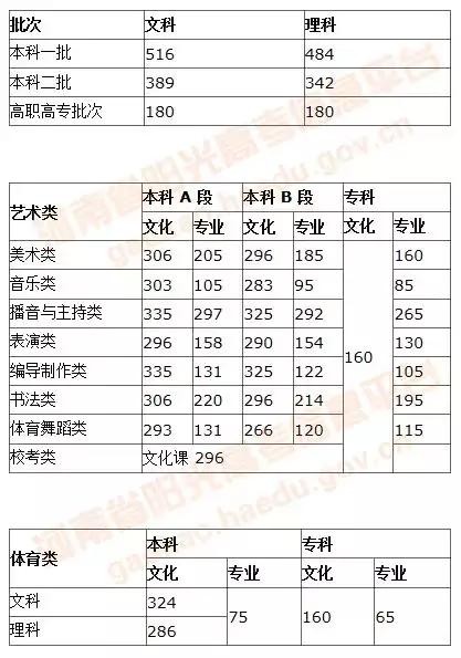 2016年河南高考分数线