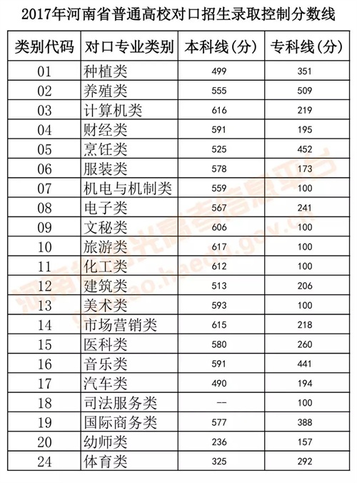 2017年河南高考分数线