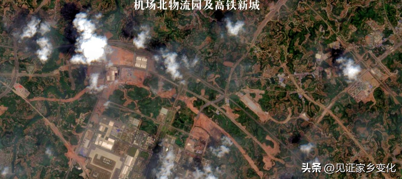 机场北物流园及高铁新城:变化也是不大,从卫星地图显示简州大道两车道路段开始扩宽改造。机场北线加快建设。