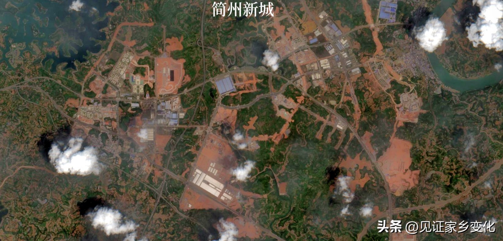 根据卫星地图显示简州新城变化比较路网建设速度很快整体来看简州新城城市框剪已经比简阳城区还好!