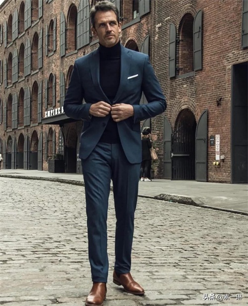 切尔西皮靴+西装+高领毛衣