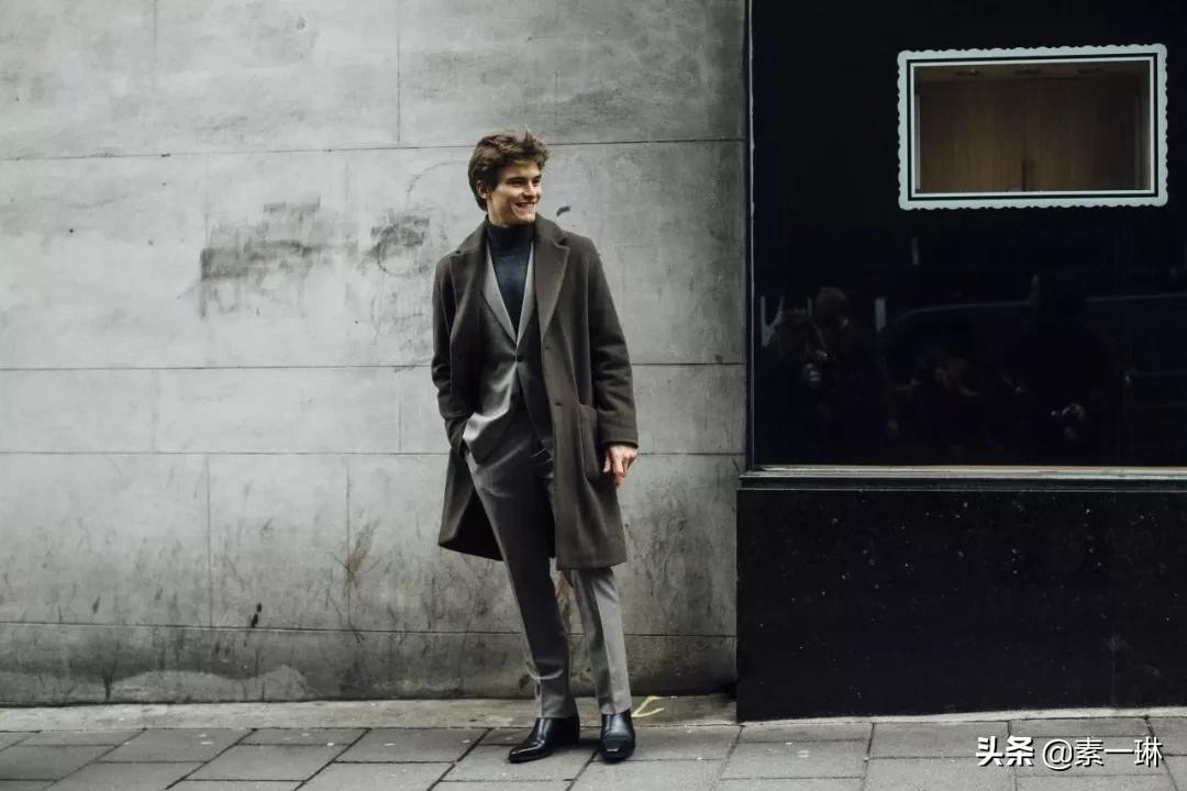 这是切尔西皮靴一道绅士风的造型,搭配西服的造型也很严谨,在寒冷的天气可以加一件高领毛衣,造型保暖又优雅。