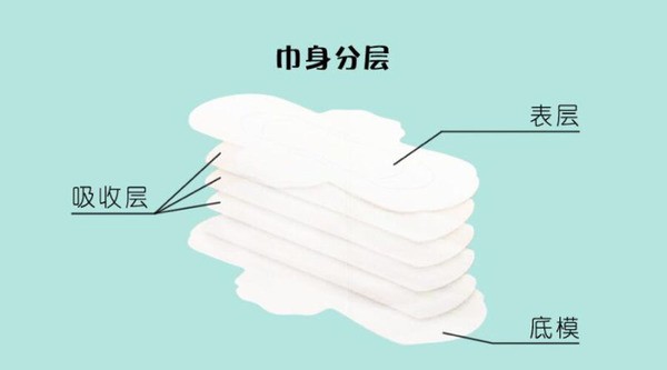 姨妈巾是由面层+中间层+底层三大重要板块制造而成。每一层的功能都不一样。