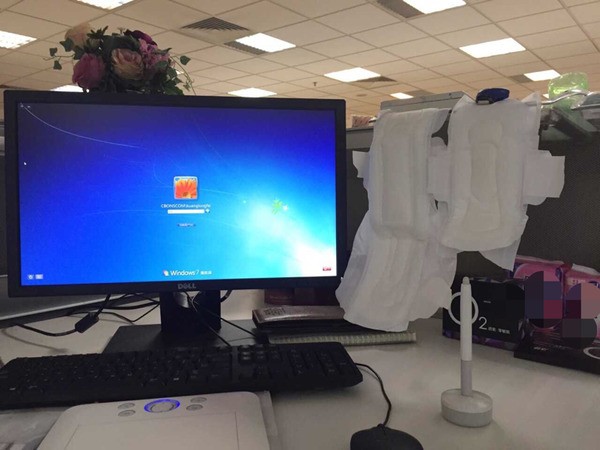 (看看我们办公桌哈哈 一大堆姨妈巾!!!)