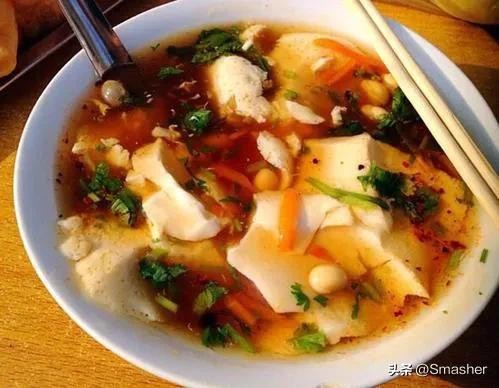 此外还有闻名遐迩的豆腐脑。豆腐脑是利用优质黄豆加工而成,并在做好后摇身变为嫩白如雪般细腻柔滑清香无比并入口即化得极尽完美状态。